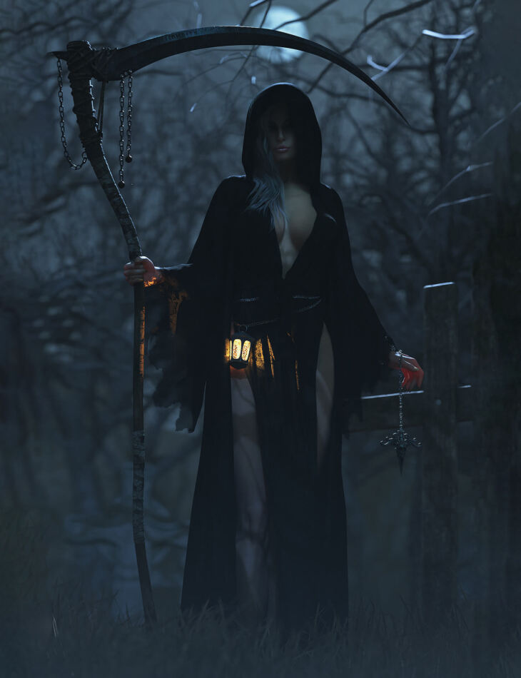 Reap the souls of the living while looking irresistible at the same time with this outfit for your Genesis 8 Female characters!