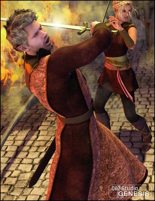 Send your characters on a quest with Defiant for Genesis, a versatile fantasy adventurer set. This 13-piece 3D clothing set with 4 props fits both male and female shapes, and includes swords and hand poses.