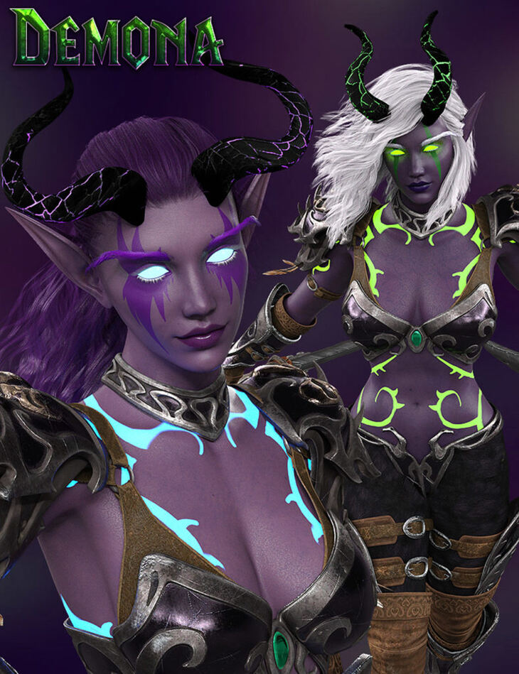 Demona is a Fantasy Themed Character Package that Includes her Horns and Elf Eyebrow Props!
