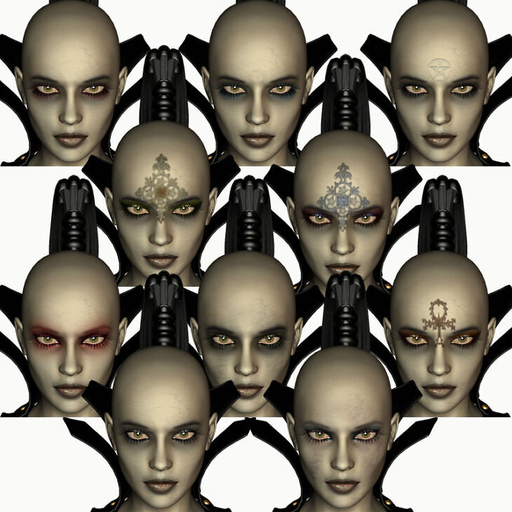 Amazing character for V4. She comes with : 10 cool eye colors. 10 amazing makeups. 10 lip colors. 10 creepy nail colors. 1 Lip Def. 1 Nail def.