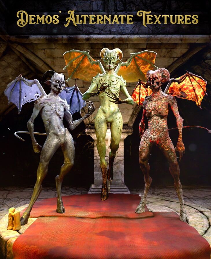 Demos Alternate Textures for Genesis 8 Males is a set of 5 Full Body textures + 10 Variants for a total of 25 Full Skin Iray Presets meant to add even more variations to Demos HD for Genesis 8 Male and its unique UV.
