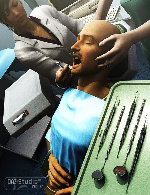 Tusks, molars, gnashers, incisors, fangs, pegs, ivories. No matter what you want to call them, your people need to take care of their teeth! And now they can with this new set of dental tools in both DAZ Studio and Poser. It comes with everything you need, including the dreaded drill!