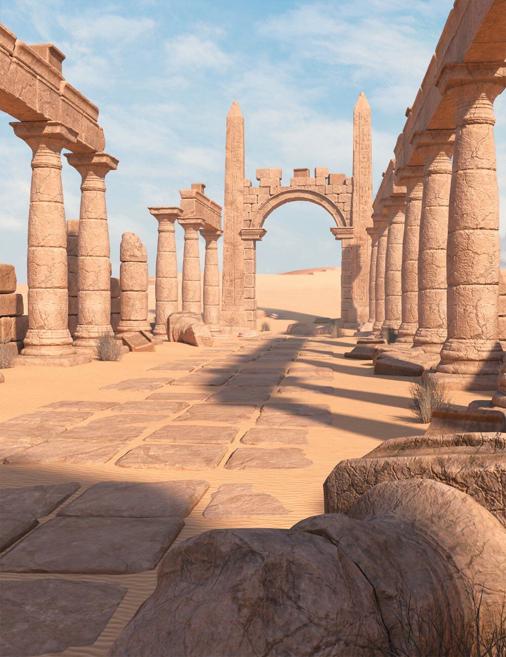 Desert Ruin is a complete environment with beautiful modular architecture (gate, column, beam, stela, etc.), landscape, and plants.