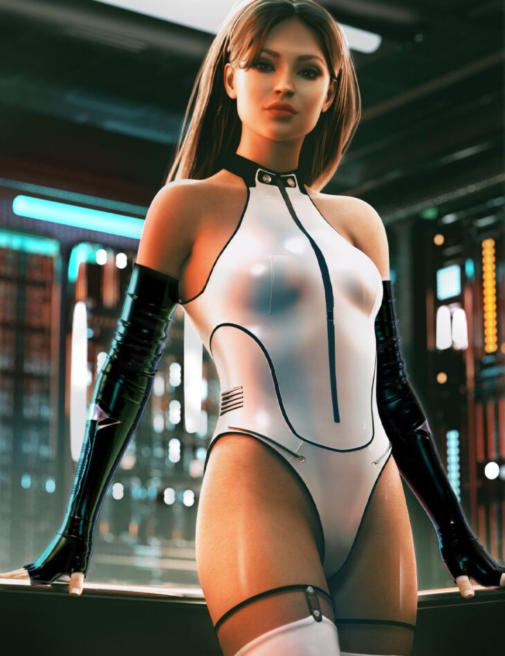 The clothing consists of a body suit, leggings, gloves, and boots. Made of white polyurethane plastic, it will fit all body types.