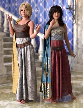 Ancient times weren't all battles and war, people also enjoyed music and dancing. These outfits can be used to add female musicians and dancers to your fantasy or historical renders, from the early Bronze age through to Roman times.