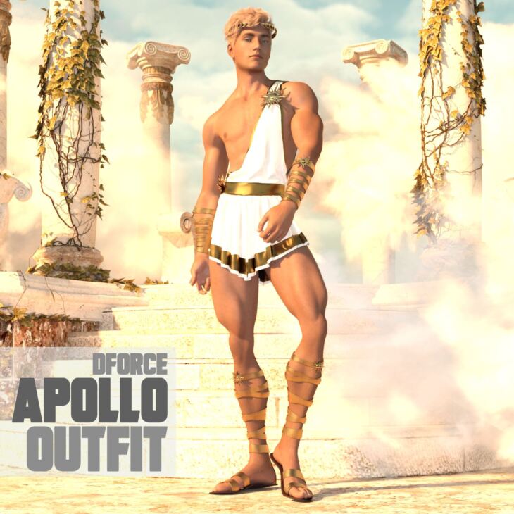 dForce Apollo Outfit for Genesis 8 Male consists in: Toga, Armbands, Sandals, Laurel Wreath.