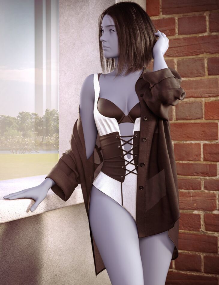 dForce Attractive Lingerie for Genesis 9 is set of clothing that consists of the bodysuit, corset shirt, bra.