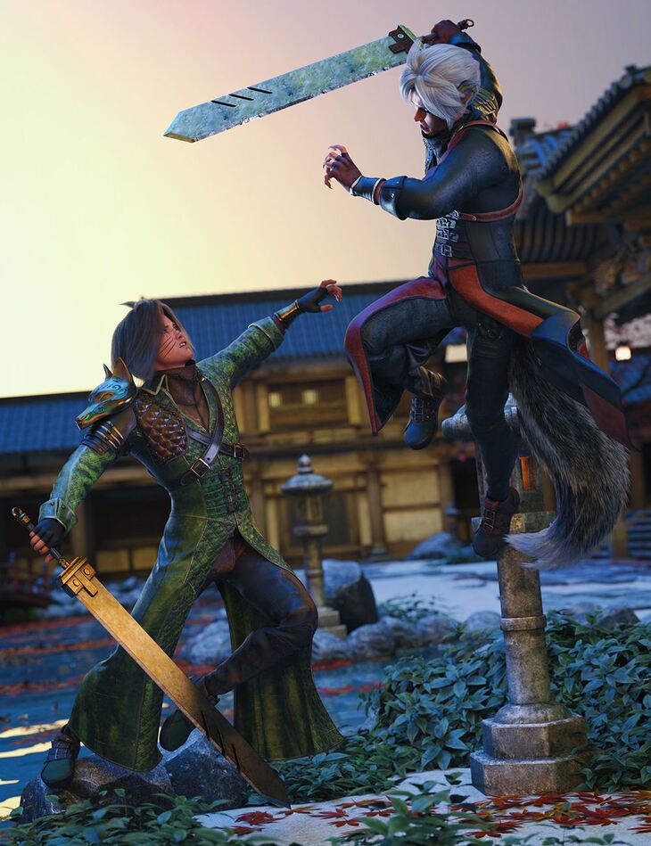Add variety to the dForce Azurite Outfit for Genesis 8 and 8.1 Males with the dForce Azurite Outfit Textures. These 4 color combinations range from regal to distressed, so your character will fit into any scene.