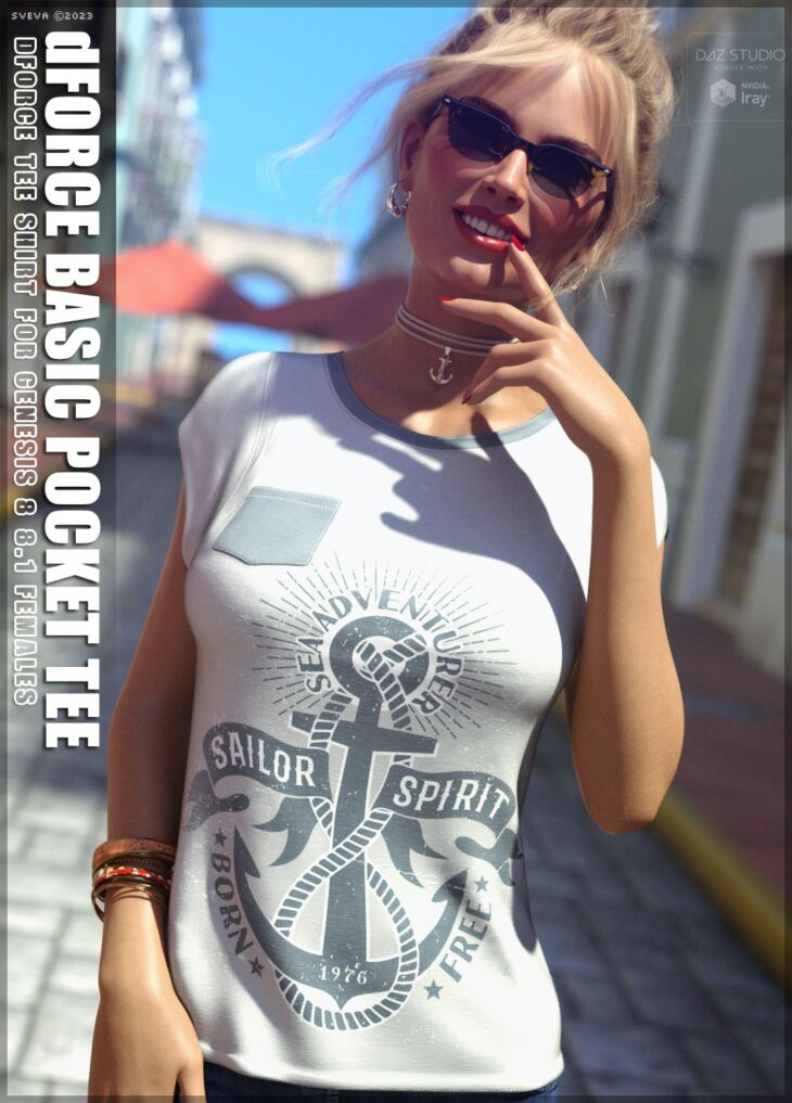 dForce Basic Pocket Tee for Genesis 8 & 8.1 Females.