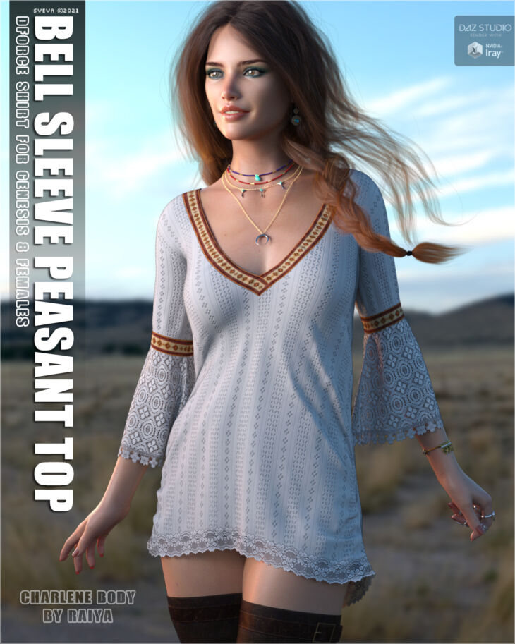 dForce Bell Sleeve Peasant Top for Genesis 8 Females.