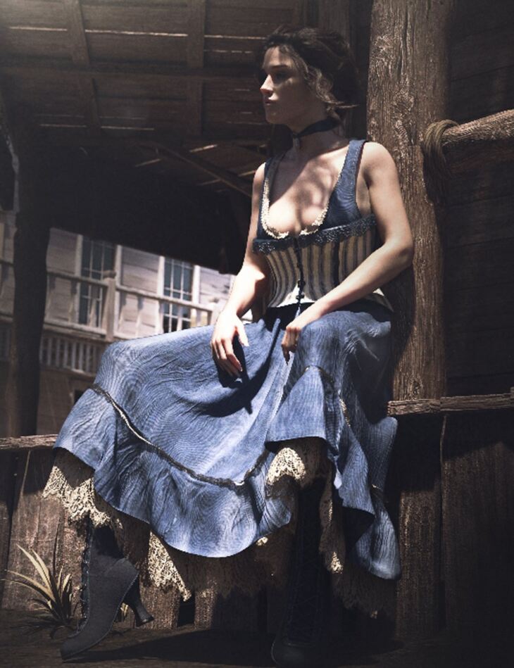 The dForce CB Clementine Outfit for Genesis 8 and 8.1 Females is a 4-piece clothing set inspired by the Wild West. It's both rigged and dForce compatible to allow for maximum movement and ease of use.