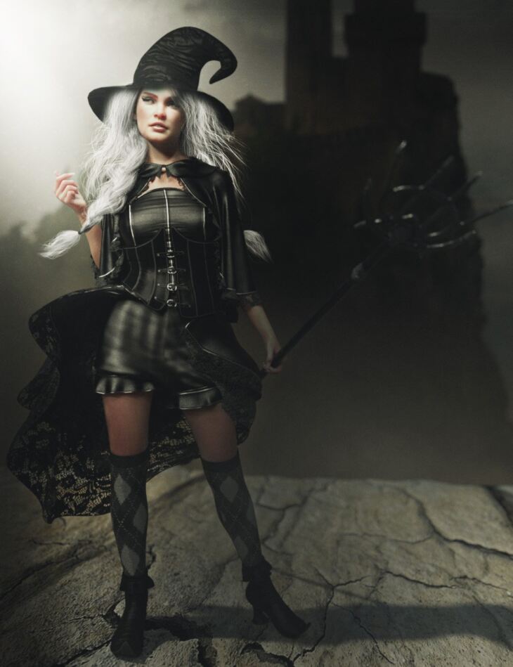 The dForce CB Luna Spell Outfit for Genesis 8 and 8.1 Females Bundle is a cute and witchy 9-piece clothing set.