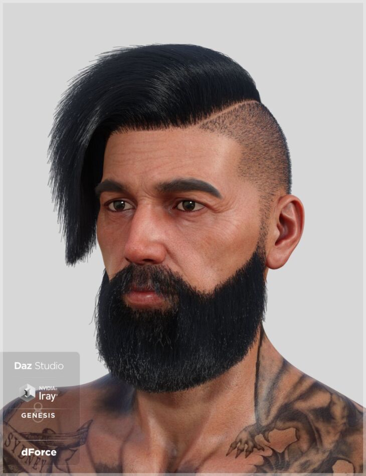 This Beard + Hair combination looks awesome on any male character, and with tons of supported shapes and Material Options, fits on any male character too.