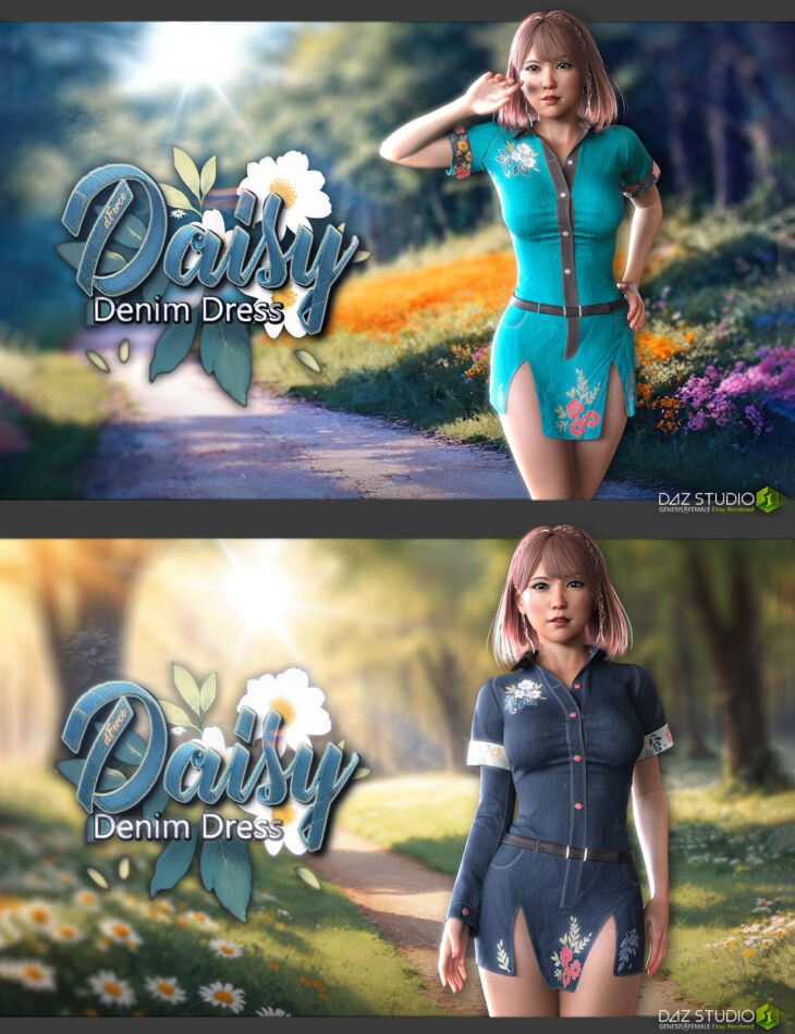 Clothing dForce Daisy Denim Dress G8F made for Genesis 8 Female(s).