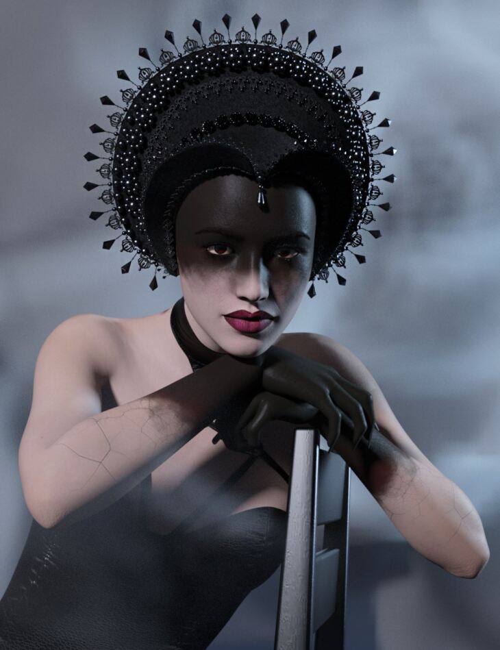 This gothic headdress is inspired by the Renaissance French hood and the Tudor headpieces. To give the perfect gothic look, you will also get fitting, fully rigged earrings and a full-body HD texture for your model. It's available as painted and natural preset.