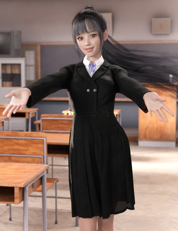 dForce Dream High School Uniform for Genesis 8 and 8.1 Females is an elegant school uniform set that comes with a jacket, skirt, and shirt.