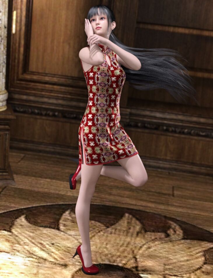 The dForce East Wind Outfit is an Eastern Style Outfit Set for Genesis 8 Female(s) including Dress, Panty and Pumps.