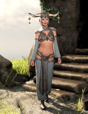 The complete outfit include. Suit, dress, light armor, bracelets for each hand, crystal necklace, legs brooches, boots and a magic staff. Also Include morphs shapes to the breast and to the waist.