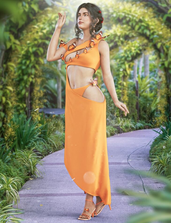 Blend contemporary fashion with fantasy with the dForce Elrora Butterfly Outfit for Genesis 8 and 8.1 Females.