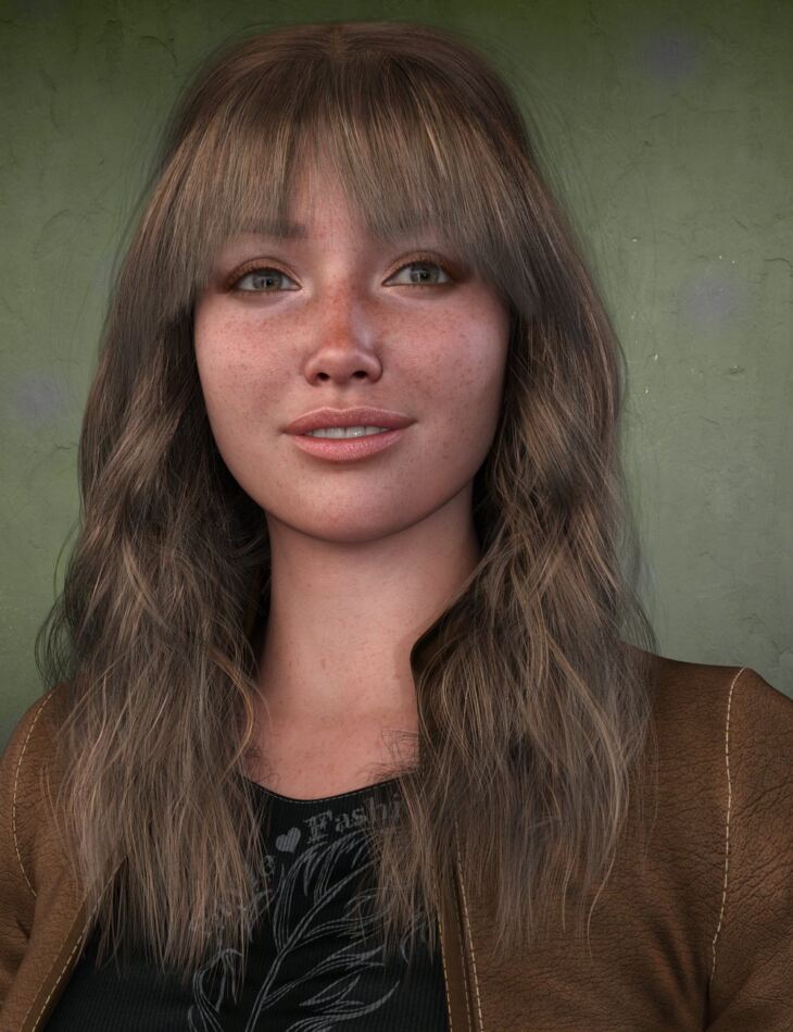 dForce Emberlynn Hair is a lightweight strand-based dForce hair for Genesis 9 figures. 20 colors, glossy settings, a variety of shaping morphs, and thin layered flyaway hair for messier hairs are included.