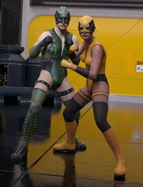 This set consists of Feather Fan Figures, a two-piece dForce Outfit, 8 base Poses with mirror and heel options and a selection of Material, Hierarchical Material, Shader, and dForce presets. The Genesis 9 versions are optimized to work with the Genesis 9 Feminine shape.