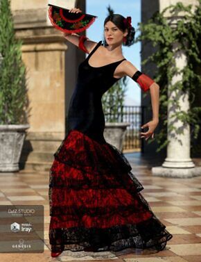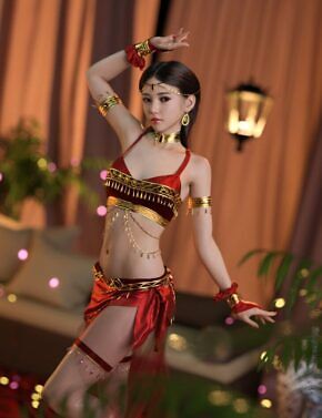 dForce Fantasy Dancer Outfit and Poses For Genesis 8 Female(s) is a complete outfit of several pieces (fantasykini, armbands, anklets, and skirt) that can be used independently, with 10 poses included, and many materials to choose for each part, including hide options, so you can customize it completely.