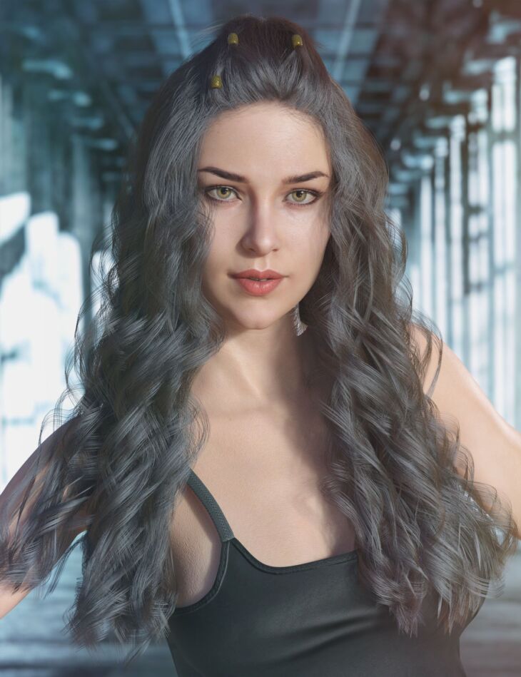 dForce Faye Hair is a morphing dForce strand hair model of a long wavy style with half updo. Morph dial sliders help fit your figure poses beyond the 15 sample hair poses provided. The dForce hair is grown on a skull cap, which is fitted for Genesis 3 & 8 Female(s), and auto-follows most character head shapes.