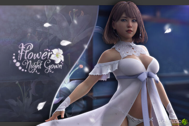 Clothing dForce Flower Night Gown made for Genesis 8 Female(s). Other body morphs are supported by Auto-follow.