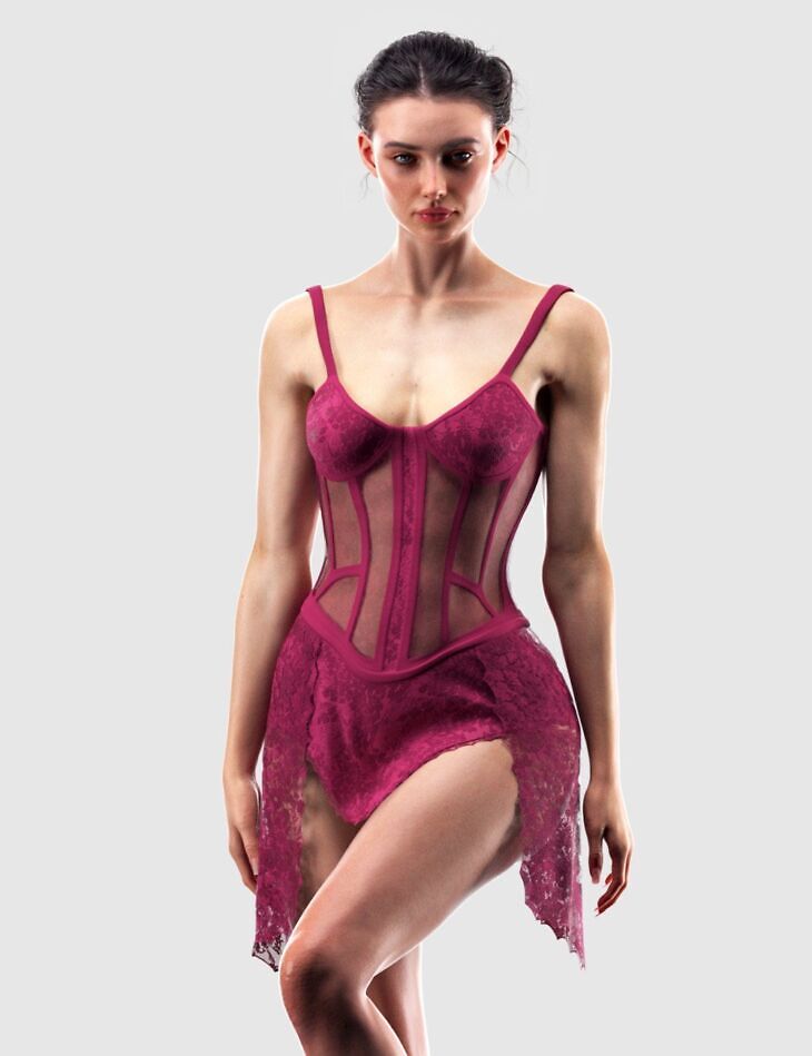 Sizzle with this seductive texture addon for the dForce Gothic Corset for Genesis 9, featuring floral embroidery detailing and see-through panels.