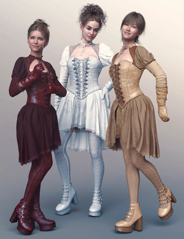 dForce Gothic Style Outfit for Genesis 9 Texture Add-On a variety of six texture finishes for dForce Gothic Style Outfit for Genesis 9.