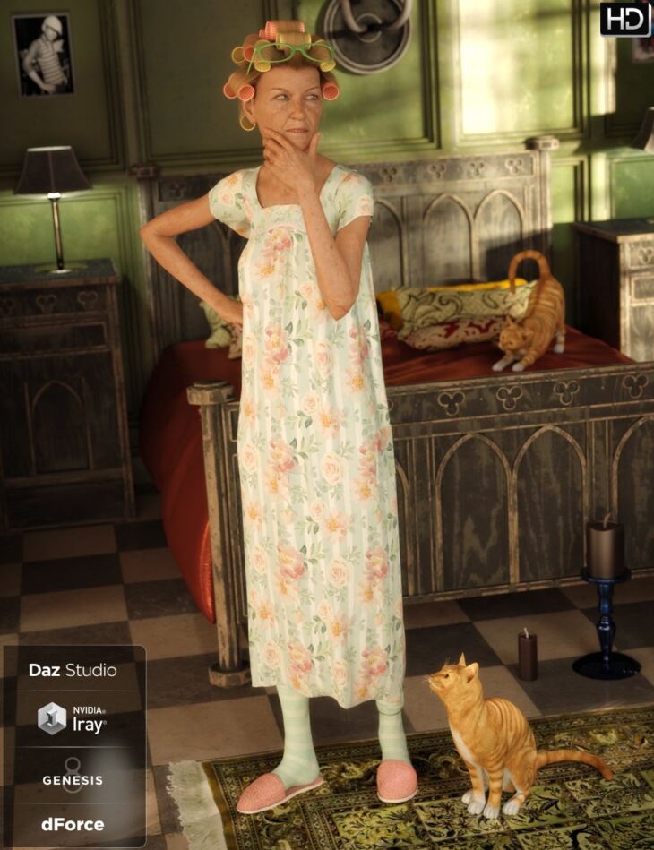dForce Granny Nightgown Outfit for Genesis 8 Female(s).