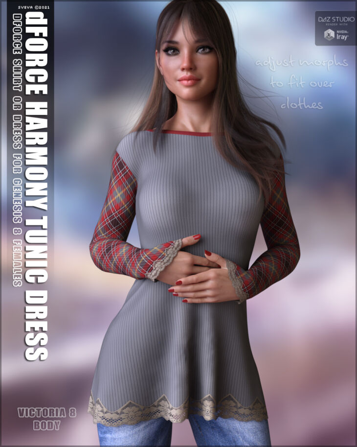 dForce Harmony Tunic Dress for Genesis 8 Females.