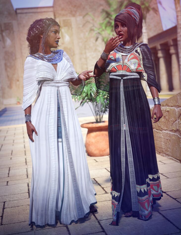 Get the most out of your dForce Hemet-Nisut Outfit with this Textures Add-on. It includes fulls sets in the following styles: Ochre red, Dune white/green, Lapis blue, and Sun orange and black.