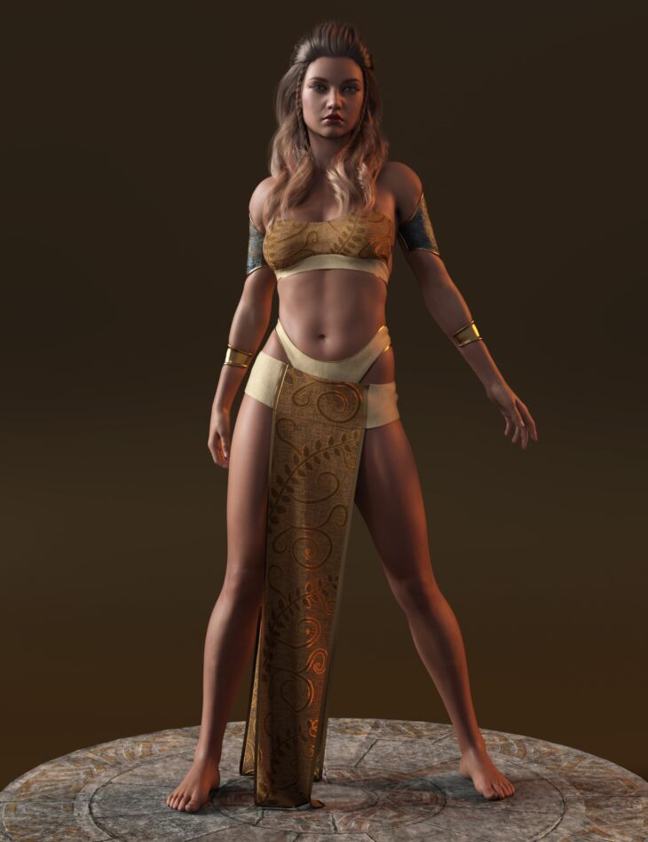 Get ready for your fantasy renders and dForce Heroic Loincloth Outfit for Genesis 8 Female, which comes with arm guards, a loincloth skirt, bottoms, and a top. Included are 3 high-quality, high-resolution texture styles to choose from.