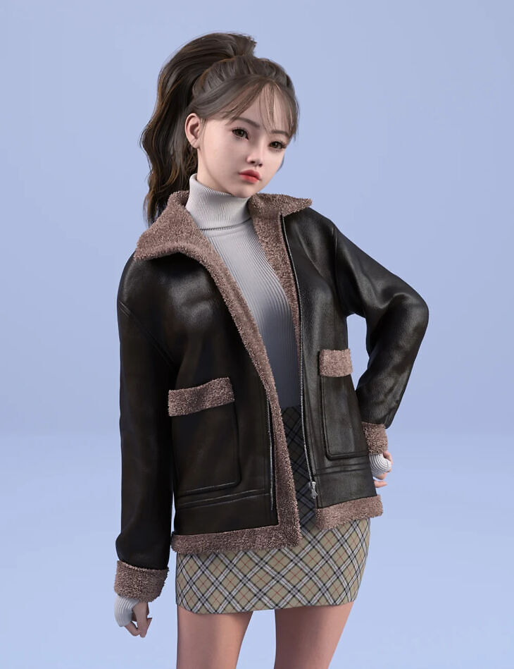 The dForce HnC24 Mustang Jacket Outfit for Genesis 9 is a stylish and rugged 3D clothing set designed for the Genesis 9 figure.