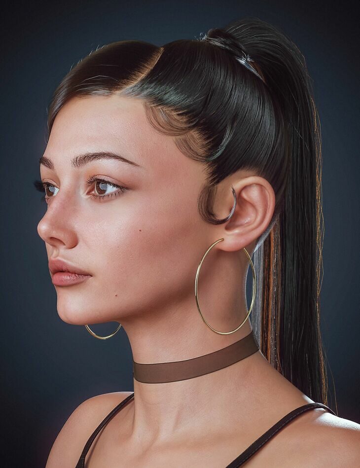 Revise your character's style with the dForce HS Ursula Ponytail for Genesis 9 Hair using the OmniHair shader.