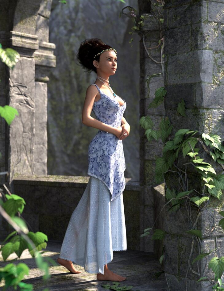 The dForce Hyleoroi Outfit for Genesis 8 and 8.1 Females is a 10-piece outfit complete with dForce clothing and several accessories.