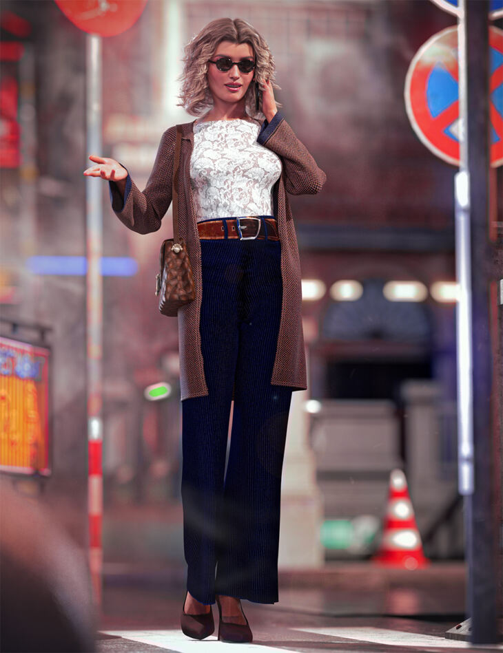 The dForce Iconic Style Outfit for Genesis 8 Females Bundle is a classic outfit that works for both the hard-working woman and playful socialite.
