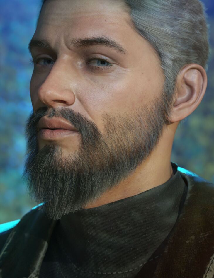 dForce Iden Beard is morphing dForce strands model of a short beard. There are 10 material presets and 10 length presets ready to use and/or modify to your taste.