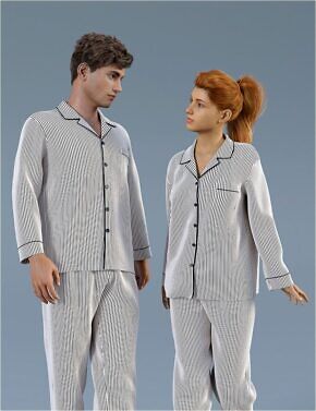 It's time for your character to relax with comfortable Leisure Wear Pajamas for the whole family. dForce Leisure Wear Pajamas for Genesis 8 is designed for both male and female Genesis 8 figures and fully conforms to them, with the added advantage of dForce cloth simulation on the pants and shirt.