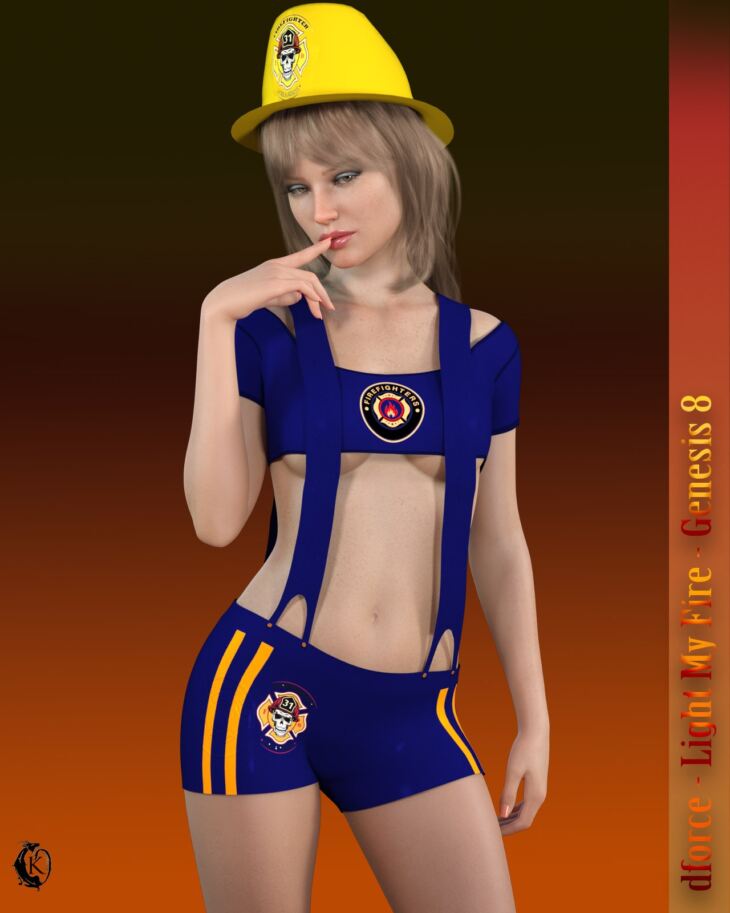 C'mon Baby Light My Fire. Bring the heat this Halloween ( or any time ) in this hot little firefighter costume for your Genesis 8 girls. Best with dforce but works without for most shapes.