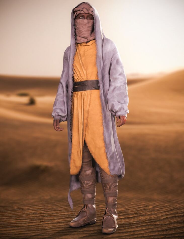 dForce Lost In Desert Outfit for Genesis 9 is a great outfit for the desert or a desolate future.