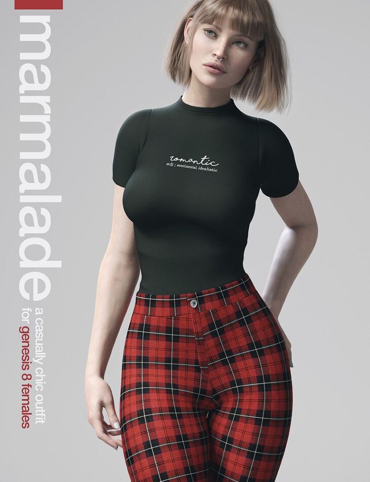 The dForce Marmalade Outfit for Genesis 8 Females comes with t-shirt, pants, camera and photograph, and bonus abundant color options and text overlays, so the lightweight t-shirt is fit to match any mood or style.
