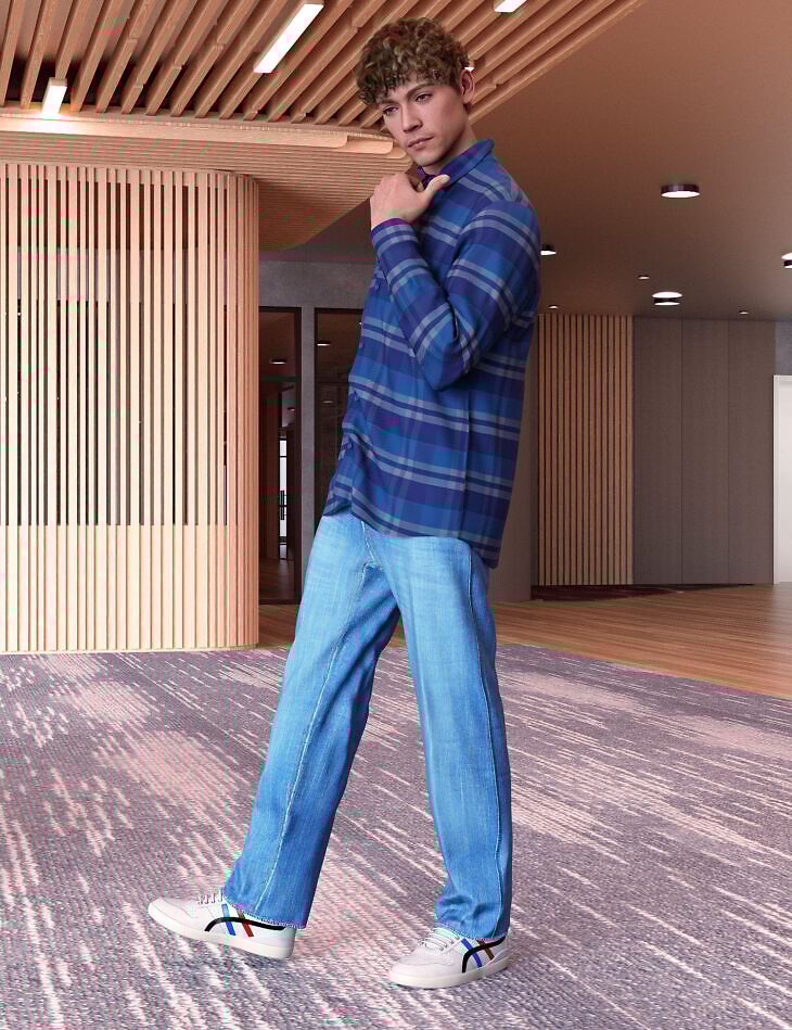 Make your character stand out in your indoor and outdoor scenes with the dForce Men's Modern Clothing Set for Genesis 9 Male.