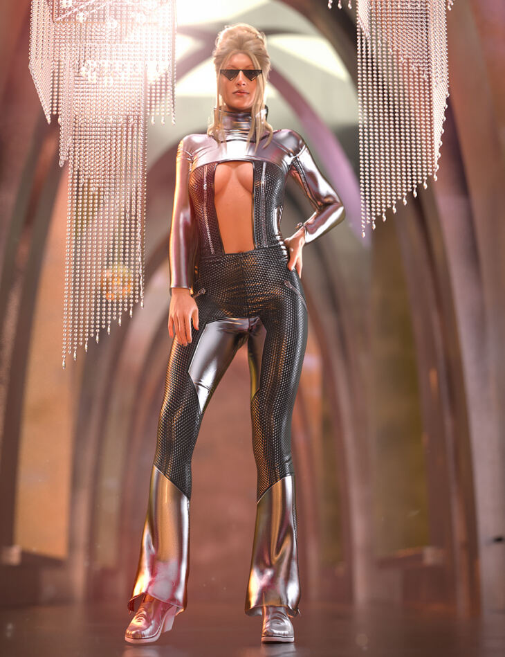 The sun's brilliance doesn't compare to you with the dForce Mina Outfit for Genesis 8 and 8.1 Females, a modern, shining outfit that comes with the jumpsuit, shoes, and glasses. Get this set for the catwalk, red carpet, or night on the town!