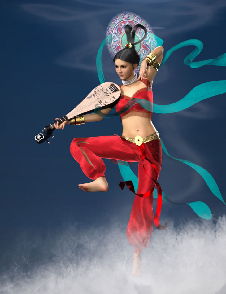 The MK Flying Outfit comes in 6 colors with 2 patterns for MK Flying Belt and 2 costume presets for standing and flying. Each Ribbon has more than 8 joints for adjusting posture. Walk into the Dunhuang Flying cultural world. The product is made for dForce but works well in most poses as conforming.