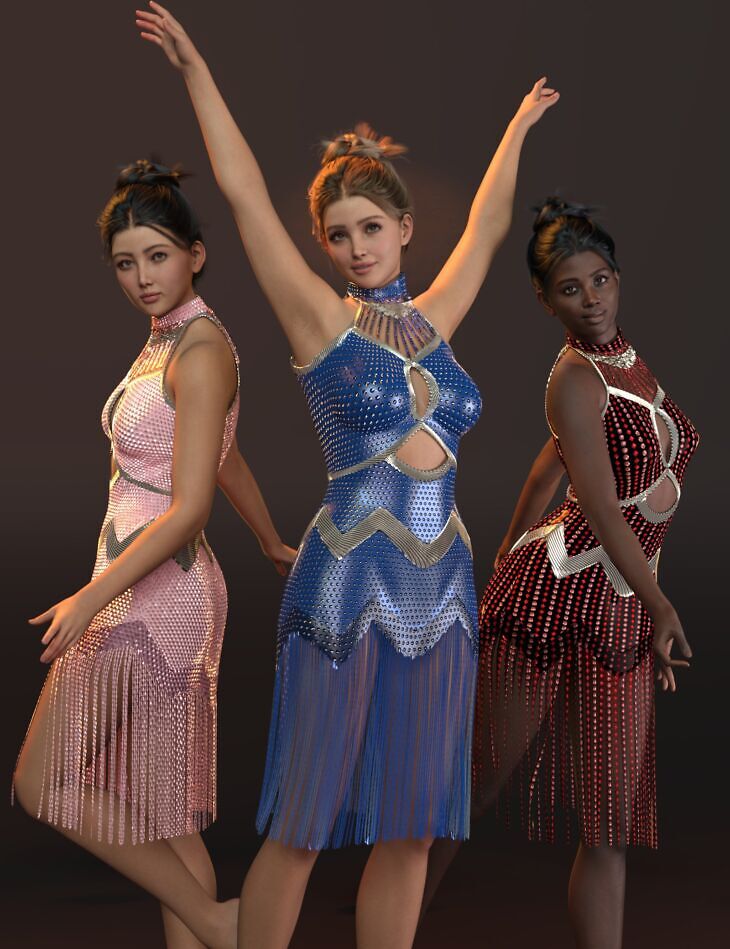 The dForce MK Fringed Evening Dress for Genesis 9 is a stunning costume designed for Genesis 9 figures.