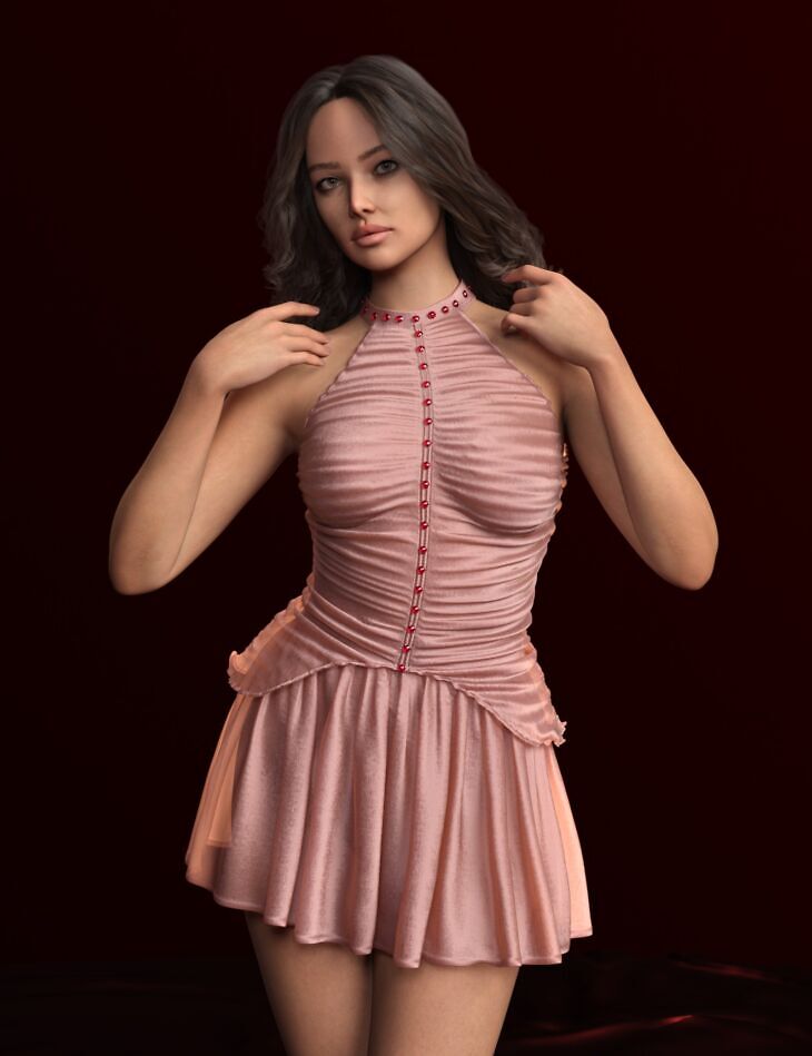 The dForce MK Pleated Halter Dress for Genesis 9 is a stunning costume designed for Genesis 9 figures.