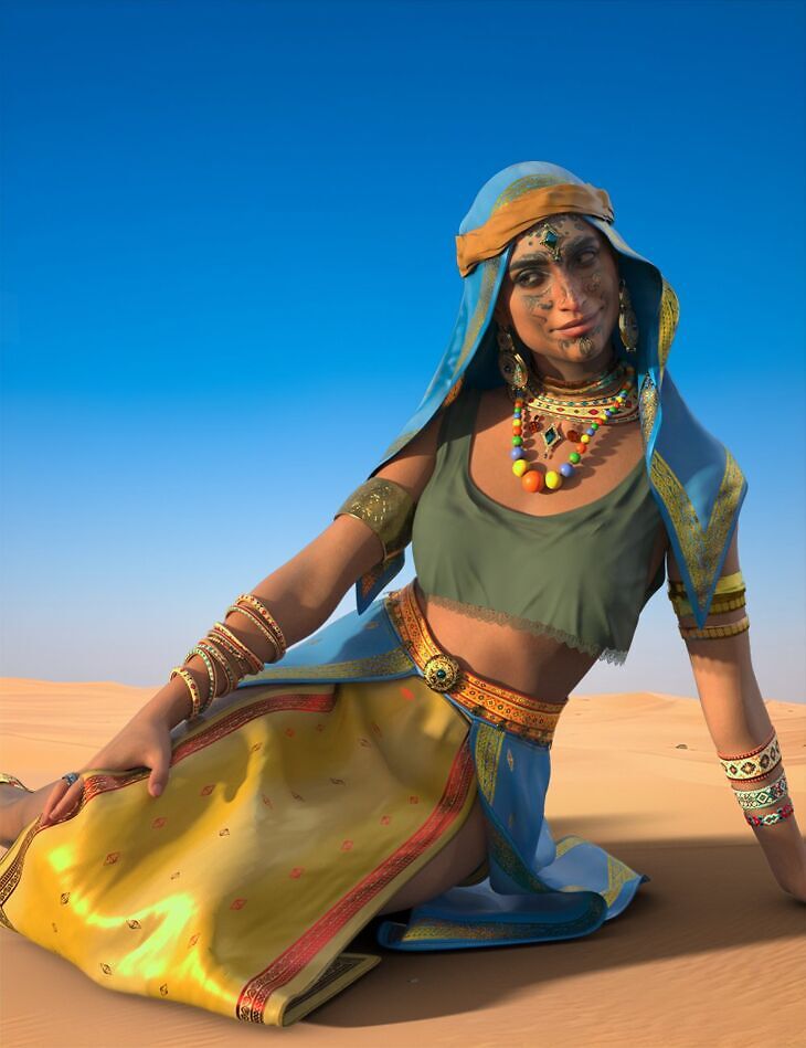 The dForce Moroccan Berber outfit and jewelry for Genesis 9 offer a beautifully detailed and culturally inspired ensemble that captures the essence of traditional Berber attire, featuring intricate patterns, vibrant colors, and authentic accessories such as jewelry, headpieces, and garments.
