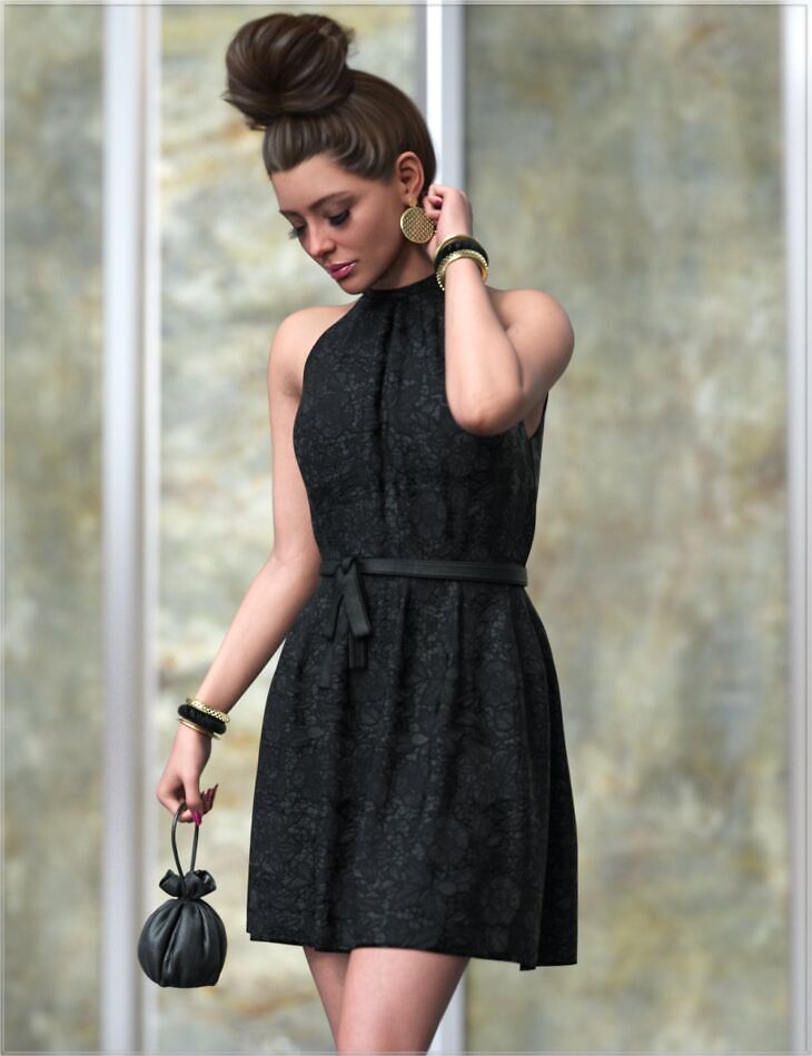 dForce Pure Class Outfit for Genesis 9 includes: Dress, Bag zeroed Left and Right, Earrings, Bangles L & R. 5 Full texture presets.